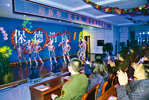 近日,保德縣委宣傳部、縣文化局組織文藝工作者走進駐地警營,為他們書寫春聯(lián),并獻上了精彩的文藝演出。圖為演出現(xiàn)場。(李富永 攝)