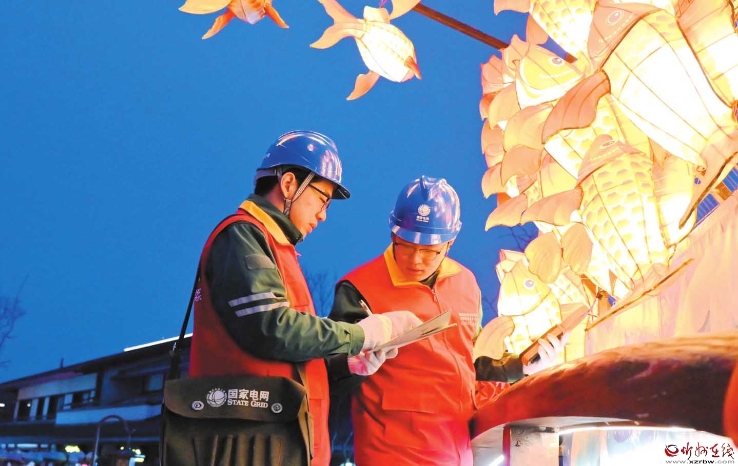 為保障節(jié)日期間景區(qū)可靠供電,國網(wǎng)忻府區(qū)供電公司組織員工在云中河景區(qū)巡檢線路,主動服務,守護萬家燈火。(