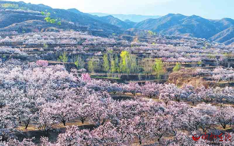 清明時(shí)節(jié),忻府區(qū)奇村鎮(zhèn)井溝村迎來(lái)杏花盛放期。粉白花瓣綴滿枝頭,順著層層梯田漫山鋪展,將溝壑縱橫的黃土高原暈染成一幅溫柔的春日畫(huà)卷。(記者 馮曉磊攝)