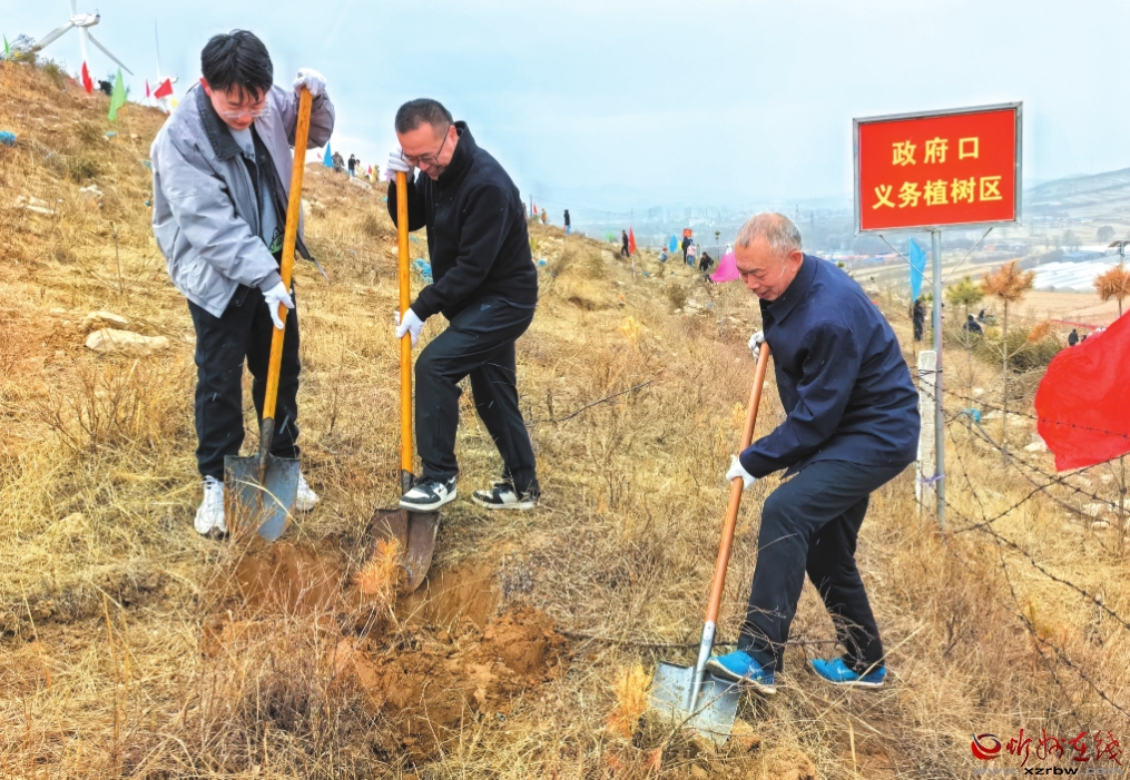 神池縣堅持擴綠、興綠、護綠并舉,高標準推進國土綠化,筑牢晉北生態(tài)屏障。圖為該縣搶抓春季植樹造林黃金期,廣泛動員干部群眾在榮莊子村東山頭鄭志東攝上開展義務植樹活動。(鄭志東 攝)
