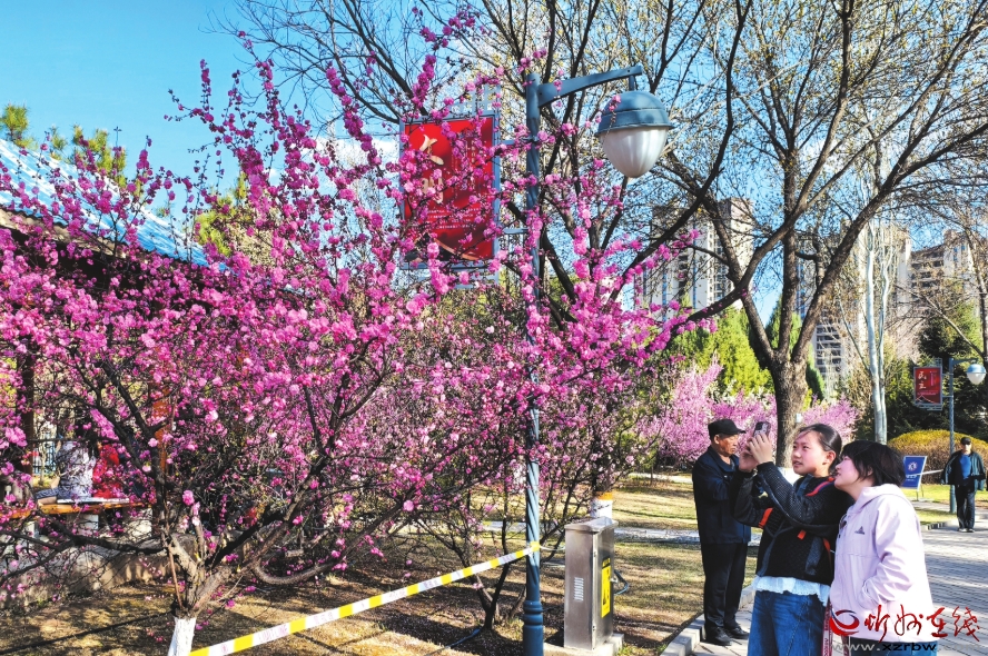近日,游客在城區(qū)人民公園打卡拍照,樂享春日美好時光。(