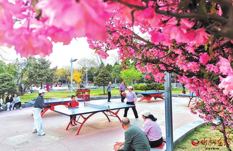 4月12日,市民在和平廣場(chǎng)開展戶外活動(dòng)。暮春時(shí)節(jié),忻州城區(qū)姹紫嫣紅,處處生機(jī)勃勃。(