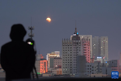 3月3日,在黑龍江省齊齊哈爾市,攝影愛(ài)好者在拍攝月全食。(新華社發(fā) 王勇剛 攝)