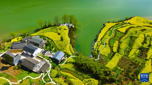 重慶市黔江區(qū)阿蓬江鎮(zhèn)大坪村油菜花開放(3月4日攝,無人機(jī)照片)。(新華社發(fā) 楊敏 攝)
