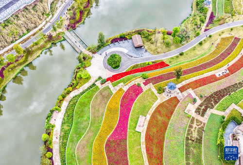 3月18日,游客在重慶市璧山區(qū)古道灣公園游玩(無(wú)人機(jī)照片)。(新華社記者 唐奕 攝)