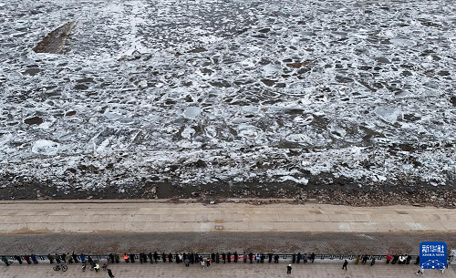 4月12日,人們?cè)谟^賞松花江干流富錦段流冰景觀(無人機(jī)照片)。(新華社發(fā) 曲玉寶 攝)