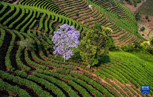 4月15日在普洱市思茅區(qū)倚象鎮(zhèn)拍攝的茶山(無人機(jī)照片)。(新華社記者 陳欣波 攝)