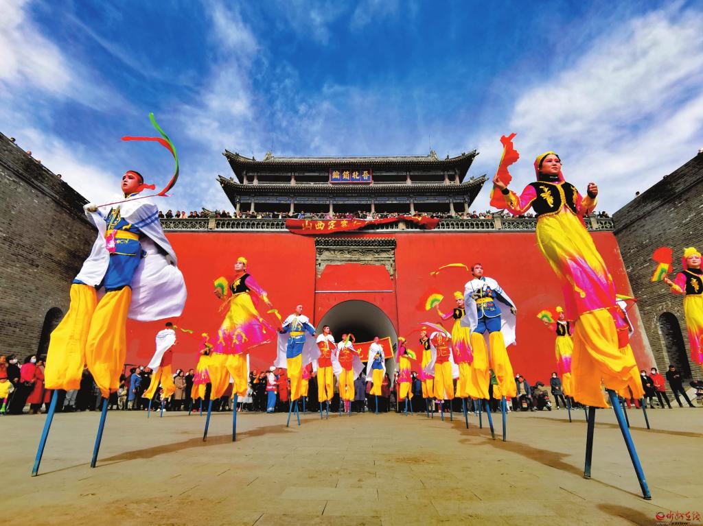 定襄社火和各類傳統(tǒng)民俗活動歷史悠久,各類極具地方特色的民俗文化活動觀賞性很強,二兔藝術團盡情舞動,表情歡悅;老干部藝術團鶴發(fā)童顏,精神抖擻;夢之藍旗袍隊舉止高雅,體態(tài)大方;紅燈籠高蹺隊腳踏雙木,輕松自如……有趣的互動,讓大家樂在其中。喜慶的樂曲,歡快的表演,充分展現了人民群眾的新生活、新風尚、新面貌,迎來觀眾一片喝彩聲,讓游客感受到了定襄的民俗文化魅力。(張存良 攝)