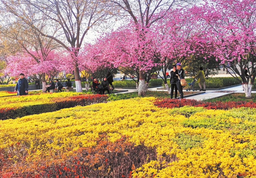 時值春暖花開季節(jié),忻州城區(qū)處處繁花似錦,美不勝收。圖為4月14日,市民在忻州城區(qū)和平廣場靜享春光。 (宮清華 攝)