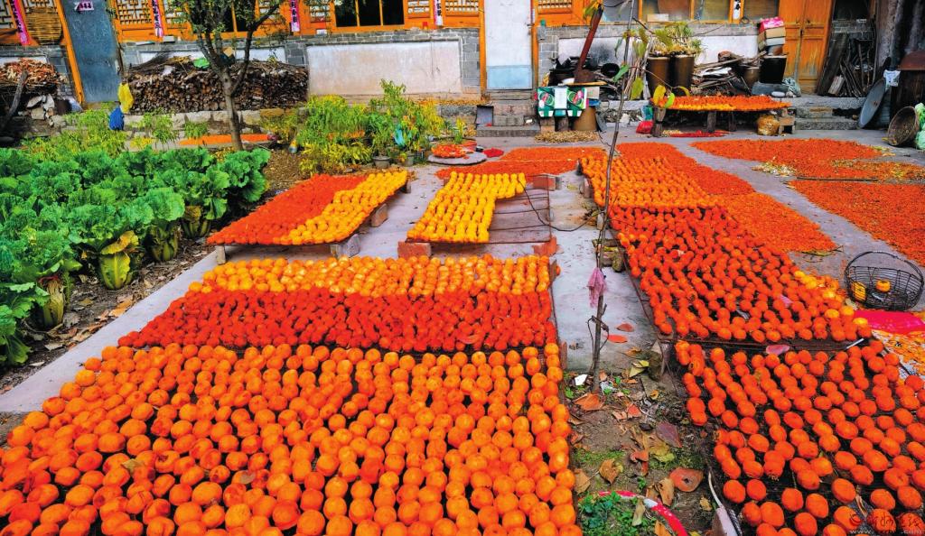 這個季節(jié),東峪便成為網(wǎng)紅打卡地,吸引了遠近無數(shù)的游人。這樣的美景,最宜天晴時靜賞,紅柿,藍天,冷暖相宜,濃淡有致,組成了一幅絕美的秋韻圖。這個季節(jié),也是農(nóng)戶的豐收季,一家人都出動,把柿子摘下,在院子里晾曬,滿院子甘甜美味,是煙火人間里最真切的幸福,心里也會生出喜悅和希望。(本報記者 聶艷英)
