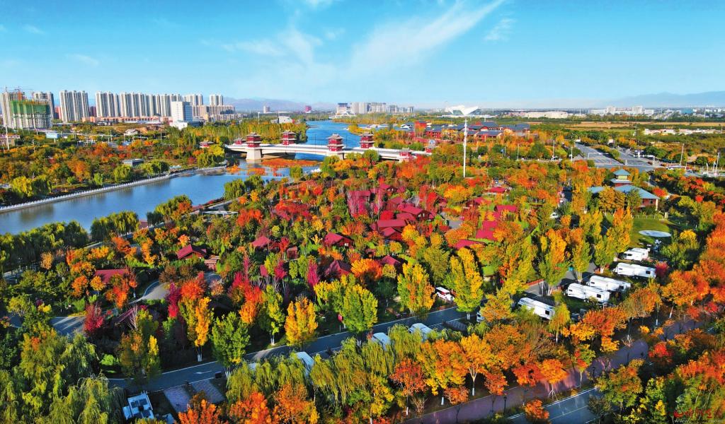 俯瞰忻州云中河房車營地,繽紛秋色撲面而來。(本報(bào)記者 張存良攝)