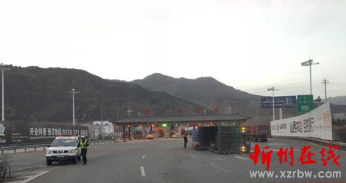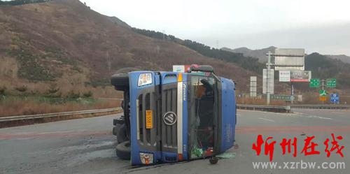 2016年11月19日17時00分許,山西交警高速二支隊九大隊民警翟躍、郭騏源接到報警稱:在五保高速12km(五臺山景區(qū)收費站內(nèi)廣場)處,有一輛藍色歐曼牌重型半掛貨車因操作不當(dāng),將掛車內(nèi)裝的鋼棒側(cè)滑,導(dǎo)致車輛側(cè)翻,造成車輛及路產(chǎn)不同程度損壞的道路交通事故。大隊民警第一時間趕赴現(xiàn)場,及時詢問當(dāng)事人是否受傷,是否需要撥打“120”急救,并了解了當(dāng)時的事發(fā)情況。當(dāng)事人稱:“自己一個人開車回定襄,為省過路費,想著從五臺山景區(qū)高速口下,繞行低速回定襄,由于在下匝道時,打方向過急,車速較快,將車上所拉的鋼棒側(cè)滑,造成車輛的側(cè)翻,所幸人沒有受傷。”之后,民警對現(xiàn)場進行勘查,并調(diào)取監(jiān)控視頻,發(fā)現(xiàn)車輛在轉(zhuǎn)彎時,車速較快,駕駛員操作不當(dāng)是造成事故發(fā)生的原因。