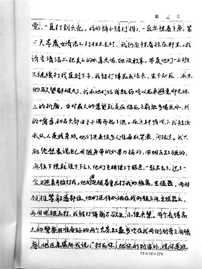 劉吉強(qiáng)還撰寫了一封控告信??馗嫘爬铮枋隽?天夢魘般的經(jīng)歷:辦案人員用腳踢他的臉,用手銬把他吊掛在鐵管做的橫梁上拳打腳踢,用電棍擊打身體的各部位。