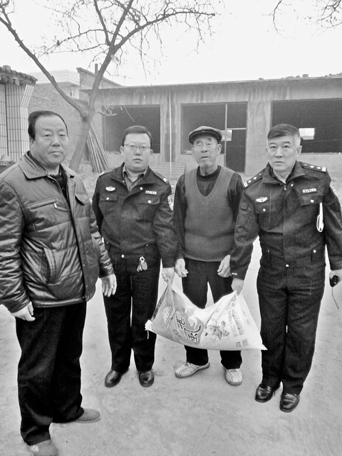 近年來,大隊把扶貧工作當作一項政治任務抓在手上,為了更好地精準扶貧,按計劃力爭提前完成扶貧攻堅任務。2015年,李晉生擔任了原平市南白鄉(xiāng)尚義村的第一書記,負責該村的幫扶工作。南白鄉(xiāng)尚義村是原平市的重點貧困村,也是交警大隊幫扶村,全村204人,貧困人口占80%。當年12月17日,他自籌2000多元,購買了米、面、糧、油,與大隊的4位民警來到了南白鄉(xiāng)尚義村走訪慰問特困家庭。在全市開展精準扶貧的攻堅階段,為了讓特困家庭度過溫暖的冬季,交警大隊民警進村入戶共慰問五保戶、特困戶8戶,為他們送去了面粉、大米和食用油。同時,大隊長還看望了90歲高齡的抗戰(zhàn)老兵趙書良,1925年出生的趙書良老人,17歲時就參軍,在抗日戰(zhàn)爭中多次立功授獎。當老人雙手接過慰問金后,激動地說:“還是共產黨好,人民警察和人民真是心連心啊!”