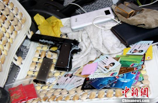 抓捕張軍(化名)現(xiàn)場繳獲的手槍等物品。 張懷安 攝