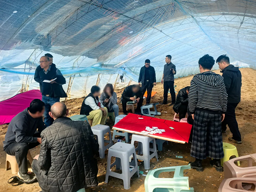 “警察!別動!” 近日 忻府警方周密偵查、果斷出擊 成功搗毀一個賭博窩點 凈化了轄區(qū)治安環(huán)境 3月初 忻府分局治安大隊獲悉一條涉賭線索 立即圍繞線索展開偵查 該賭博團伙反偵查意識較強 為逃避警方打擊 將賭博窩點藏匿于一廢棄蔬菜大棚內(nèi) 采取熟人介紹、專人放哨的方式組織賭博 嚴重影響轄區(qū)治安秩序穩(wěn)定 為徹底打掉這一賭博團伙 分局立即抽調(diào)精干警力成立專案組 經(jīng)連續(xù)多日秘密偵查 成功摸清該窩點人員結(jié)構(gòu) 活動規(guī)律及進出路線 3月11日13時 在確認收網(wǎng)時機成熟后 專案組立即調(diào)集警力 迅速控制各個出入口與關鍵點位 當場抓獲涉賭人員32人 收繳賭資10萬余元、賭具若干