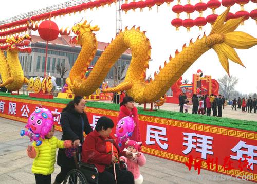 2月15日,河曲縣臨隩公園內(nèi)張燈結(jié)彩,歡樂祥和,一位行走不便的老人坐著輪椅在家人的陪護下游園觀燈。“兩節(jié)”期間,這里由晉神能源、山西同德化工等九家駐河曲大企業(yè)制作的”展望十三五,全面建小康“企業(yè)形象宣傳燈展,吸引了觀眾眼球,各式彩燈造型新穎,栩栩如生,為節(jié)日增添了濃厚的喜慶氛圍。(鄔耿杰 攝)