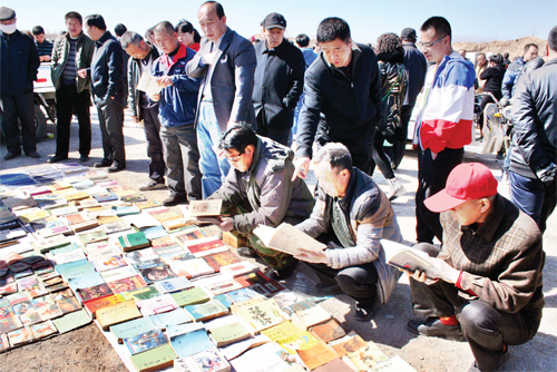3月14日,原平市文化路集貿(mào)市場(chǎng)圖書飄香,市民們正在挑選自己喜愛的書籍。該市著力打造文化強(qiáng)市,處處彰顯文化氛圍。(趙春曉 攝)
