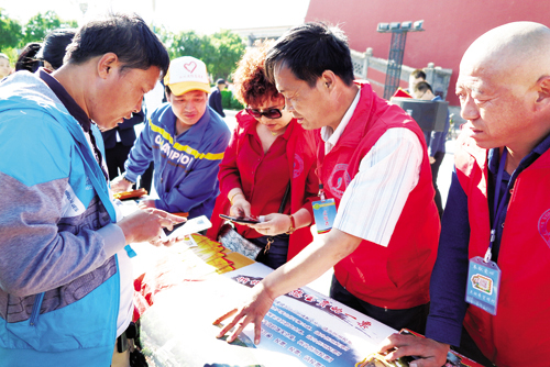 活動吸引了四面八方的群眾,大家紛紛拿出手機,掃描海報上的二維碼,現場關注“人說山西好風光”微信公眾號,為美麗家鄉(xiāng)忻州投上一票?!靶弥菸锶A天寶,人杰地靈,游遍神州,最美忻州”,“在忻州大地,佛教圣地五臺山、雄偉壯觀雁門關、薈萃十景蘆芽山、險峻神奇老牛灣、世外桃源娘娘灘,諸多景觀世人驚嘆,魅力無窮,支持忻州申辦全省旅游發(fā)展大會”。市民在現場說。圖為投票現場(魯明強)