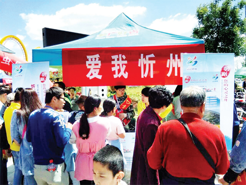 5 月15 日,忻州青年志愿者服務(wù)協(xié)會(huì)、愛(ài)心公益聯(lián)盟、忻州師院志工部的愛(ài)心人士,人員一起來(lái)到云中河景區(qū)晉忻夢(mèng)幻樂(lè)園門(mén)前,開(kāi)展“愛(ài)我忻州、為家鄉(xiāng)投票”活動(dòng),為我市“申旅”助力。活動(dòng)現(xiàn)場(chǎng)吸引了眾多游客,大家紛紛拿出手機(jī),為美麗的家鄉(xiāng)投票。圖為投票活動(dòng)現(xiàn)場(chǎng)。(張志遠(yuǎn) 攝)