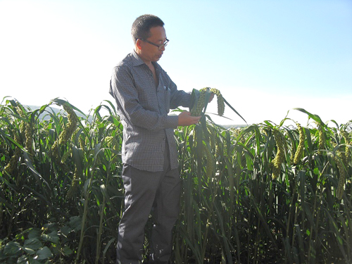 8月16日,山西省偏關(guān)縣氣象局農(nóng)業(yè)氣象服務(wù)人員,深入本縣老營鎮(zhèn)老營村,調(diào)研“張雜谷”生長的氣象條件,指導(dǎo)農(nóng)民防御自然災(zāi)害。今年,受厄爾尼諾影響,偏關(guān)縣降水正常偏多,但極端天氣頻發(fā),僅暴雨就下了三次,冰雹下了三到四次,大風(fēng)出現(xiàn)了一次??上驳氖墙邓唷皬堧s谷”長勢喜人,谷穗長的大而粗。農(nóng)民最擔心的是大風(fēng)、冰雹和霜凍,三種災(zāi)害都會造成“張雜谷”減產(chǎn),甚至顆粒無收。農(nóng)業(yè)氣象人員向農(nóng)民講解了防御三種氣象災(zāi)害的方法,并提醒農(nóng)民朋友每天關(guān)注偏關(guān)縣電視天氣預(yù)報,注意接收天氣預(yù)警短信,防患于未然,奪取今年農(nóng)業(yè)豐收。(彭愛國)