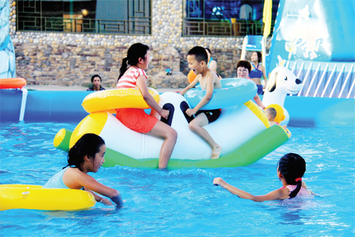 8月21日,原平市天牙山景區(qū)“水上動(dòng)漫世界”樂園里熱鬧非凡,暑期的孩子們?cè)诩议L陪同下,快樂玩耍。假期里,孩子們走出家門,親近自然,參與各種體育活動(dòng),放松了心情,增強(qiáng)了體質(zhì)。(吉建平攝)
