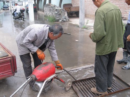 汛期以來,河曲縣南園村立足于防大汛、抗大災(zāi),積極組織人員排查整治安全隱患。降雨后,個別下水道露出淤塞“真容”,村里立即請來管道疏通師傅,并派村民配合,發(fā)現(xiàn)一處,疏通一處,預(yù)防水災(zāi)。圖為管道疏通師傅和村民一起疏通村西頭道路下水口。(賈金理 攝)