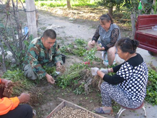 8月28日,河曲縣南園村一戶農(nóng)民圍坐地頭摘花生。花生是當(dāng)?shù)刂饕?jīng)濟作物,農(nóng)民千方百計促其增效。賣嫩花生變是手段之一。這不,處暑剛過,農(nóng)民就亟不可待地刨花生 、摘花生,搶占嫩花生“旺市”。嫩花生帶殼煮熟,是美味可口的休閑食品、饋贈佳品,備受人們喜愛。此舉豐富了市民餐桌,減輕了一次性收獲后的銷售壓力,每畝還能增收近千元,幾乎相當(dāng)于多種了1畝地。(賈金理 攝)