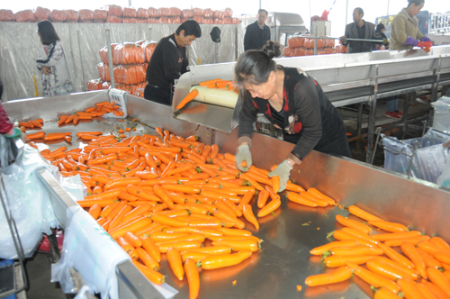 豐收季節(jié),耀入眼簾的是一顆顆閃著金黃燦爛光芒的優(yōu)質(zhì)胡蘿卜,經(jīng)過流水作業(yè)清洗,由員工的巧手整理包裝入袋,經(jīng)包裝運(yùn)往江蘇等地,帶動周邊地區(qū)近3000農(nóng)戶受益。圖為綠源亨通視頻有限公司胡蘿卜流水作業(yè)生產(chǎn)線。(喬偉 侯曉敏)