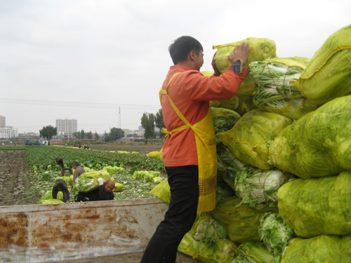 10月23日,河曲縣南園村大白菜種植戶忙著砍白菜、撕老幫、裝袋子,幫助內(nèi)蒙古準(zhǔn)格爾旗、伊金霍洛旗和本縣沙泉鄉(xiāng)的客戶裝白菜,熱鬧中洋溢著豐收的喜悅。該村充分利用土肥水富、交通便利等優(yōu)越條件,大力發(fā)展蔬菜產(chǎn)業(yè),形成了“一村一品”產(chǎn)、供、銷格局,成為晉陜蒙交匯地區(qū)蔬菜基地。特別是近千畝優(yōu)質(zhì)大白菜深受縣內(nèi)外經(jīng)銷商和消費(fèi)者青睞,每年霜降前后,周邊市縣前來購(gòu)買的菜販絡(luò)繹不絕。(賈金理攝)