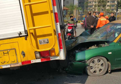 11月3日上午11時許,在忻州市區(qū)建設(shè)北路與杏林街十字路口發(fā)生兩車相撞事故,事故造成一人負傷,目前傷者已送往醫(yī)院接受治療。事故現(xiàn)場,一輛出租車和一輛黃色的市政工程車相撞,黃色市政工程車的右后輪騎壓在出租車前臉,出租車前臉已被壓扁,黃色市政工程車油箱柴油外溢,事故原因正在調(diào)查中。(郝法林)