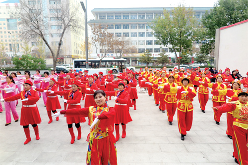 本報(bào)訊 11月6日,“紀(jì)念長(zhǎng)征勝利80周年”文藝匯演在城區(qū)和平西街晉城銀行舉行。來(lái)自忻府區(qū)城門樓、體育場(chǎng)、富莊村、九源新村等街道鄉(xiāng)村的9個(gè)代表隊(duì)近100人參與了演出,表演了舞蹈《中國(guó)美》、模特展示《十送紅軍》、秧歌《大得勝》等16個(gè)節(jié)目。 據(jù)了解,此次活動(dòng)由晉城銀行和精品鑼鼓隊(duì)聯(lián)合舉行。雖然當(dāng)天氣溫較低,但演員們個(gè)個(gè)身著盛裝、精神抖擻,其中不乏年過(guò)古稀的退休教師、老干部等,他們積極向上的精神狀態(tài)感染了眾多圍觀的市民。 “我們舉辦這次活動(dòng)就是為了緬懷革命先烈、弘揚(yáng)長(zhǎng)征精神。同時(shí)也讓更多的老年人能夠積極參加文化娛樂(lè)活動(dòng),在鍛煉身體的同時(shí)也擁有一個(gè)愉快的心情?!?6歲的精品鑼鼓隊(duì)負(fù)責(zé)人梁月娥對(duì)記者說(shuō)。圖為活動(dòng)現(xiàn)場(chǎng)(王菲 攝影報(bào)道) (責(zé)任編輯:李冬梅) |