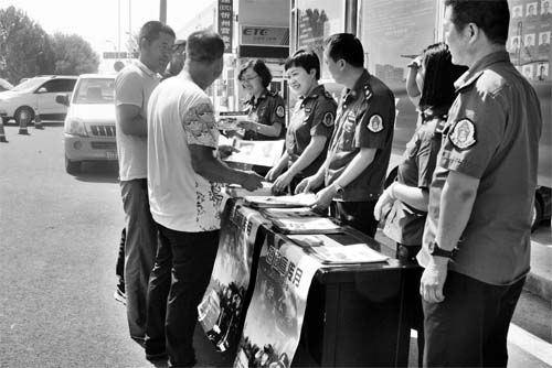 活動(dòng)期間,原太路政大隊(duì)通過(guò)在轄區(qū)收費(fèi)站廣場(chǎng)、治超點(diǎn)、服務(wù)區(qū),沿線社區(qū)、村莊等場(chǎng)所懸掛宣傳條幅、設(shè)置咨詢服務(wù)臺(tái)、發(fā)放宣傳資料向廣大人民群眾積極宣傳法律法規(guī)知識(shí),通過(guò)發(fā)送微信、微博等方式廣泛深入普及公路、橋梁安全保護(hù)法律知識(shí),掀起了路政法制宣傳熱潮,得到了社會(huì)公眾對(duì)路政管理的理解和支持。