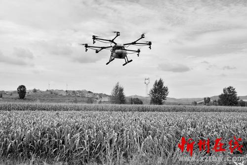 山西農(nóng)大植保無(wú)人機(jī)為神池縣段笏咀進(jìn)行富硒肥噴施作業(yè) 李濤 攝