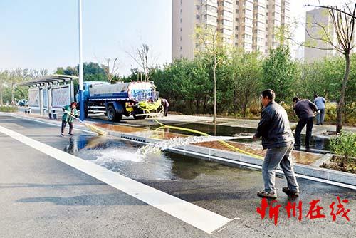 10月12日,在建設(shè)路北拓路段,工人們正在加班加點認真清洗打掃道路。最近幾天,忻州城區(qū)新修道路和新改造道路建設(shè)工程相繼竣工通車,市市容環(huán)境衛(wèi)生管理處和市園林管理局組織人員及時清洗道路塵埃,處處呈現(xiàn)出街寬路闊潔凈新貌。魯明強 攝
