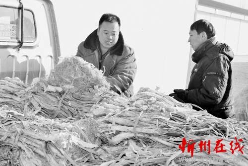 1月19日,原平市新原鄉(xiāng)新華街村的農(nóng)民正在市場(chǎng)上銷售大蔥。近年來(lái),該市農(nóng)民大力發(fā)展一村一品種植業(yè),形成了規(guī)?;?、、品牌化、效益化,有效地促進(jìn)了農(nóng)民增產(chǎn)增收。趙春曉 攝