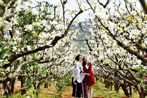 3月22日,游客和市民在塔橋園藝場內賞梨花。