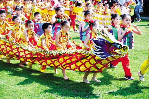 6月14日,孩子們參加旱地龍舟比賽。當(dāng)日,浙江省長興縣中心幼兒園的孩子們身著傳統(tǒng)服飾、掛上香囊,并用紙板、布匹、彩繩制作的旱地龍舟參加“劃龍舟掛香囊”傳統(tǒng)民俗迎端午的活動,感受中國傳統(tǒng)文化的魅力,了解端午節(jié)的民俗文化。據(jù)新華社 記者 徐昱 攝