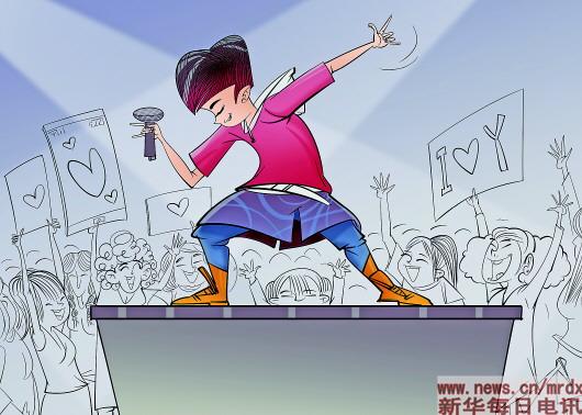 漫畫:曹一 早上七點一刻,小韓照例被鬧鐘喚醒。拿起手機,映入眼簾的是一條來自某偶像后援會的推送信息:“為他點贊,不可缺席!日常轉(zhuǎn)評贊開始啦!” 前一秒還睡眼惺忪的小韓立刻清醒過來,隨手打開鏈接,為偶像參與的娛樂節(jié)目轉(zhuǎn)發(fā)、評論、點贊。這便是她作為一名“粉絲”的日常。 近年來,伴隨諸多網(wǎng)絡(luò)選秀節(jié)目熱播以及移動互聯(lián)網(wǎng)在青少年中的深度普及,粉絲經(jīng)濟和偶像產(chǎn)業(yè)在我國獲得長足發(fā)展。從過去的仰視明星,到如今的“偶像養(yǎng)成”,粉絲群體“用愛發(fā)電”決定著偶像明星的成長方向和商業(yè)價值。 然而,在繁榮娛樂產(chǎn)業(yè)、形成“進口替代”的同時,流量當(dāng)?shù)?、顏值至上的“養(yǎng)成模式”,“一切以愛豆利益為中心”的價值導(dǎo)向和圈層文化,也給粉絲經(jīng)濟投下了陰影。(編者注:“愛豆”即英文“idol”——偶像的音譯。) “偶像養(yǎng)成”時代到來 國產(chǎn)偶像替代“進口” 3月6日,以選秀明星楊超越的名義舉辦的“第一屆超越杯編程大賽”正式開始,很快登上微博熱搜榜,引起大眾廣泛關(guān)注。比賽主辦方“百度楊超越貼吧”稱,本屆比賽要求參賽者“做任何與楊超越相關(guān)的產(chǎn)品都可以,游戲、網(wǎng)頁、工具等等”。截至報名結(jié)束,已有690人通過審核成功報名,更有數(shù)千人預(yù)約了比賽現(xiàn)場直播。 2018年,視頻直播平臺愛奇藝、騰訊相繼推出綜藝節(jié)目《偶像練習(xí)生》和《創(chuàng)造101》,分別帶火了偶像男團和女團。以此為標(biāo)志,2018年被業(yè)界稱為中國的“偶像團體元年”。 今年初,《以團之名》《青春有你》等選秀節(jié)目又再次霸屏,“偶像養(yǎng)成”之風(fēng)持續(xù)發(fā)酵。麥銳娛樂董事長王叢表示,之前這些相對小眾的“飯圈”人物如今獲得了更多曝光度,開始“出圈”并走向大眾,偶像產(chǎn)業(yè)獲得前所未有的發(fā)展機遇。 在辰海資本合伙人陳悅天看來,粉絲經(jīng)濟是伴隨偶像產(chǎn)業(yè)出現(xiàn)的,中國的偶像產(chǎn)業(yè)與傳統(tǒng)大藝人經(jīng)紀(jì)體系完全不同——后者是影視藝人和歌手,通過作品出道,主要變現(xiàn)方式是拍廣告、拍劇,收入并不依賴粉絲;而這兩年中國偶像產(chǎn)業(yè)主要從日韓發(fā)源,以唱跳歌舞為主,多以組合出道,他們大多數(shù)收入依賴消費端粉絲的直接付費,比如線上打賞與眾籌、線下包場與后援,形成了“偶像養(yǎng)成”模式。 這些龐大的數(shù)字見證了粉絲經(jīng)濟在互聯(lián)網(wǎng)時代迸發(fā)出的強大能量,也支撐起資本進入市場的決心。從Dior、Gucci等高奢品牌紛紛邀請“流量小生”擔(dān)任“品牌大使”,到《偶像練習(xí)生》《創(chuàng)造101》動輒上千萬元的集資應(yīng)援,再到不少電商平臺針對粉絲群體推出快消品牌定制款,粉絲經(jīng)濟的巨大潛能正在引起商業(yè)界的關(guān)注。 粉絲的追星舉動甚為狂熱。2015年11月8日,TFBoys組合中王源的粉絲在美國紐約時代廣場1號大廈LED大屏上為其播放15歲生日祝福視頻,該視頻也登上上海外灘6000平方米的戶外大屏和其他14個一二線城市的戶外LED,一時間成為娛樂圈熱門話題。 陳悅天說,中國的文化與內(nèi)容產(chǎn)業(yè)近幾年經(jīng)歷了一次“進口替代”過程。本土游戲差不多用了10年趕上世界先進水平,動漫只用了5年,國內(nèi)偶像產(chǎn)業(yè)與粉絲經(jīng)濟這兩年剛剛起步,預(yù)計需要5到10年在文化技術(shù)和模式養(yǎng)成方面達到日韓現(xiàn)有水平。 “現(xiàn)在已經(jīng)可以看到比較明顯的‘進口替代’效應(yīng)。5年前國內(nèi)粉絲大部分迷戀的還是日韓偶像,現(xiàn)在已經(jīng)大部分轉(zhuǎn)向國內(nèi)偶像”,陳悅天認(rèn)為,這種發(fā)展態(tài)勢很好,畢竟每一個國家的文化產(chǎn)品都有自己的價值觀在里面。 蒂壹娛樂經(jīng)紀(jì)有限公司董事長司捷表示,近年來國內(nèi)偶像產(chǎn)業(yè)得以迅速發(fā)展,產(chǎn)業(yè)鏈也逐漸完善?!笆聦嵣享n國1998年開始推動文化立國時,也對日本和歐美國家的文化產(chǎn)品進口尤其是藝人演出經(jīng)紀(jì)方面進行了諸多限制。跟經(jīng)濟產(chǎn)業(yè)一樣,文化產(chǎn)業(yè)都是需要進口替代、培育本國產(chǎn)業(yè)的,完全的市場開放只會造成完全的拱手于人?!?/p> 文化產(chǎn)業(yè)尤其是偶像產(chǎn)業(yè)能夠?qū)ζ渌?jīng)濟產(chǎn)業(yè)帶來難以估量的帶動作用。司捷介紹說,“韓流帶動了韓國汽車、美妝和電子產(chǎn)品在各國流行,看到自己喜愛的明星用什么產(chǎn)品,自己就想用什么產(chǎn)品,這是粉絲的普遍心理?!?/p> 他表示,我國的《偶像練習(xí)生》和《創(chuàng)造101》等偶像養(yǎng)成類節(jié)目已經(jīng)火到了東南亞,并期待這一快速發(fā)展的勢頭保持延續(xù)?!傲餍形幕歉鲊裥南嗤ㄓ绕涫悄贻p人溝通的最重要橋梁之一,流行文化、偶像文化‘走出去’,也是文化自信和文化軟實力的重要組成部分?!?/p> “被裹挾的狂熱” 地上霸屏,天上“買星” “偶像養(yǎng)成”的風(fēng)潮為粉絲們帶來了一場場娛樂盛宴。而隨著偶像產(chǎn)業(yè)日趨多元化和精細化,粉絲們與偶像的關(guān)系愈發(fā)緊密。后援會、粉絲團、打投組……伴隨著粉絲團體的不斷擴