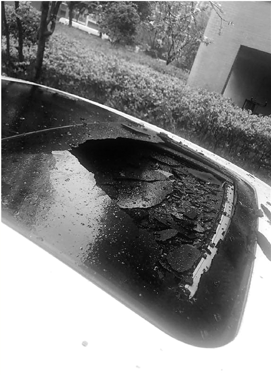 李師傅說(shuō):“3月29日一大早,我女兒送孩子上學(xué),車子就停在15幢樓下。我女兒自己都沒(méi)發(fā)現(xiàn),準(zhǔn)備開(kāi)車走了。外孫女坐在后座,她說(shuō)媽媽,我們車頂怎么有個(gè)窟窿了。我女兒下車一看,驚呆了,馬上給我打電話?!?/p>