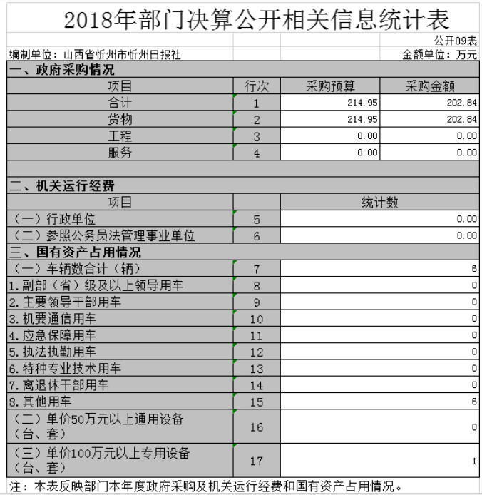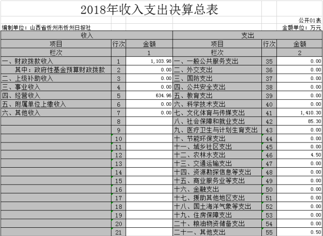 (三)部門決算單位構成:忻州日報社是一級預算單位,無下屬單位。部門預算只有一個單位,即忻州日報社。