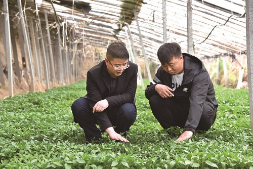 在姚邱龍的種植大棚區(qū),密密麻麻地鋪滿了綠油油的紅辣椒苗。他利用閑置的5座溫室大棚培育辣椒苗,目前已創(chuàng)收5萬多元。