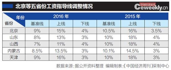 文章導(dǎo)讀: 企業(yè)工資指導(dǎo)線(下稱“工資指導(dǎo)線”)從1997年出臺(tái),至今已20年。按照慣例,各省份在每年上半年就會(huì)發(fā)布。不過,截至7月20日,《中國經(jīng)濟(jì)周刊》 記者發(fā)現(xiàn),僅有天津、北京、山東、山西、內(nèi)蒙古等五省份發(fā)布了2016年工資指導(dǎo)線,并且多是下調(diào)基準(zhǔn)線。