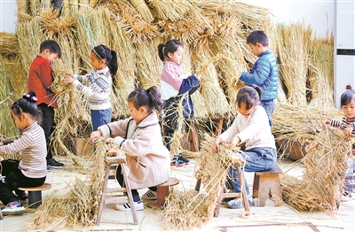近日,江蘇如皋經(jīng)濟技術(shù)開發(fā)區(qū)實驗幼兒園的小朋友在學習編草簾。大雪節(jié)氣剛過,該園開展知民俗,弘揚傳統(tǒng)文化活動,教師帶領(lǐng)小朋友走進田野,學習用秸稈編織草繩、草簾,用于包裹過冬果樹。