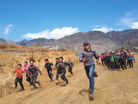 村里通路了,劉建華和學生們在賽跑。劉建華/供圖