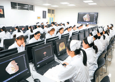 醫(yī)學技術(shù)與護理系學生運用人體解剖虛擬仿真資源進行自主學習。
