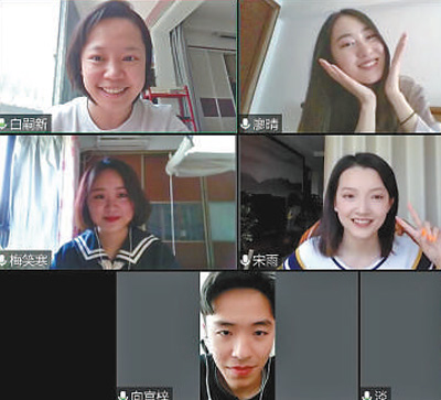 論文答辯后,華中師范大學(xué)的畢業(yè)生在線上合影。趙萌萌供圖