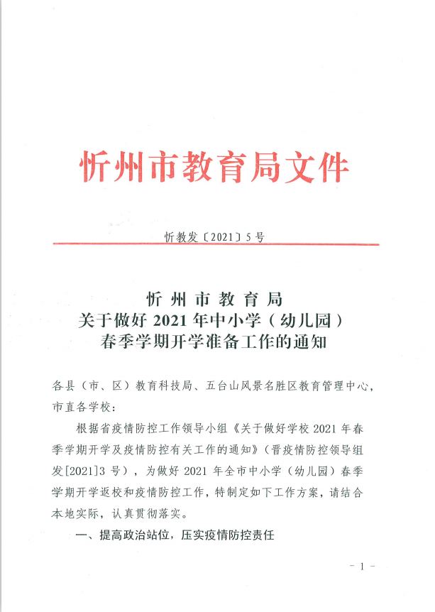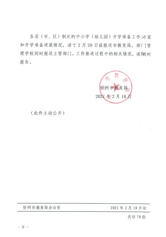 忻州市教育局關(guān)于做好2021年中小學(xué)開學(xué)準備工作的通知