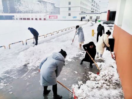 岢嵐三中教師清除校園內(nèi)的積雪,喜迎春季開(kāi)學(xué)。田沁梅攝