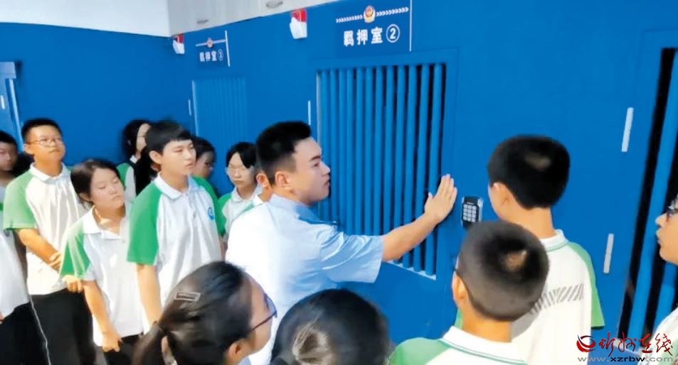 法院干警向?qū)W生們展示警用器械,詳細(xì)介紹了八件套、電子腳銬、束縛帶、盾牌等常用器械的使用方法和適用場(chǎng)合。大家聽完后,顯示出濃厚興趣,躍躍欲試,在法警叔叔的指導(dǎo)下,體驗(yàn)了各類警用器械。之后,學(xué)生們還參觀了羈押室。